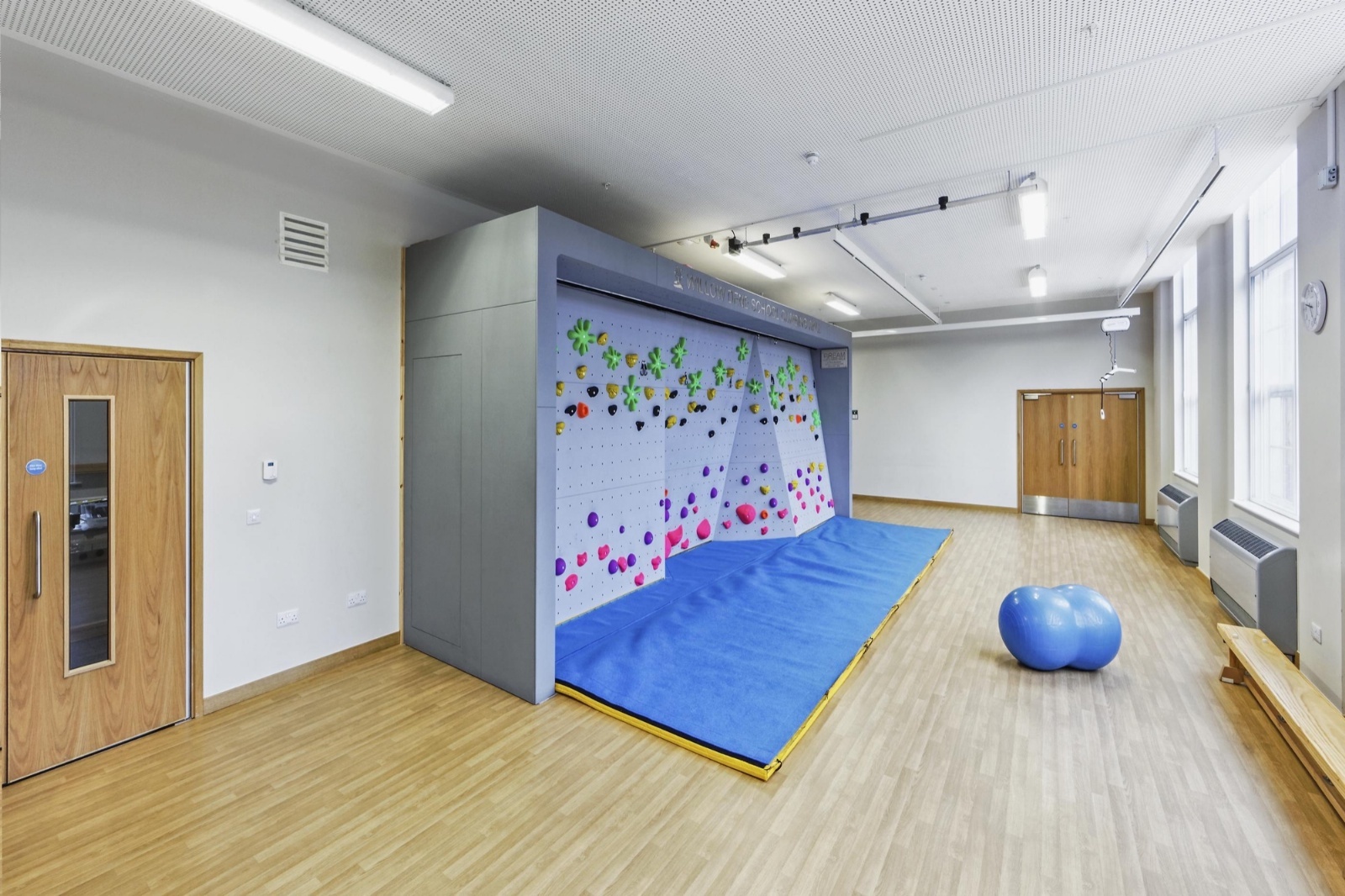 Our exercise gym supports children to develop an understanding of their health and fitness with individual fitness programmes designed to help them achieve these goals. It is equipped with a treadmill, rowing machine and elliptical trainer. The multi-purpose hall is used for P.E. lessons, community sports activities, assemblies, after-school clubs and celebrations. The P.E hall also features a climbing wall. The outdoor play space encourages movement and physical activity. Equipment includes an outdoor gym, trampolines, roundabouts and a roadway with bikes/trikes.